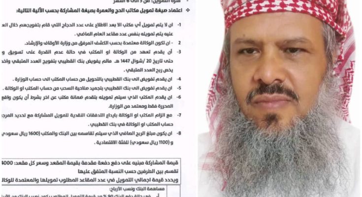 جدد مستشار وزارة الأوقاف والإرشاد، الشيخ محمد الوقشي، تحذيره للمواطنين اليمنيين من التسجيل لدى وكالات الحج المعتمدة لموسم الحج 1447هـ، مؤكداً أن العقود المبرمة بين تلك الوكالات وبنك القطيبي تتضمن معاملات ربوية محرّمة شرعاً.