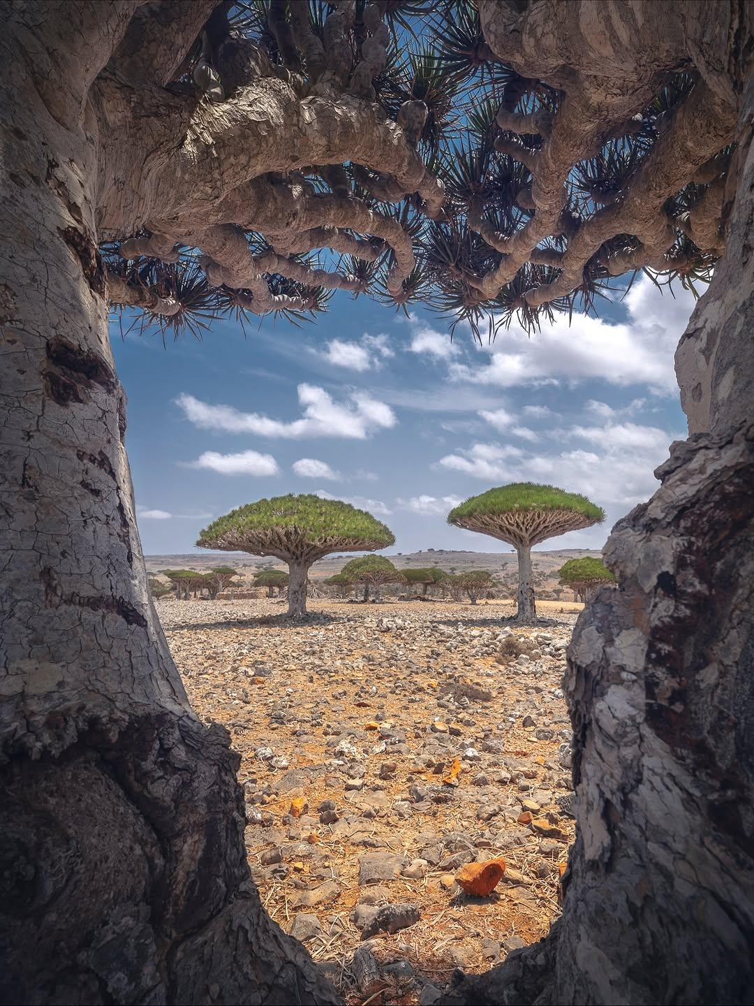 على هضبة عالية تطل على بحر العرب، ظهرت امرأة يمنية تُدعى سناء كيباني وهي تحيط شتلة صغيرة من شجرة “دم الأخوين” بسياج خشبي بسيط لحمايتها من الماعز التي تجوب الجزيرة. وقالت كيباني: “مشاهدة هذه الأشجار تموت وكأنك تفقد أحد أولادك”.