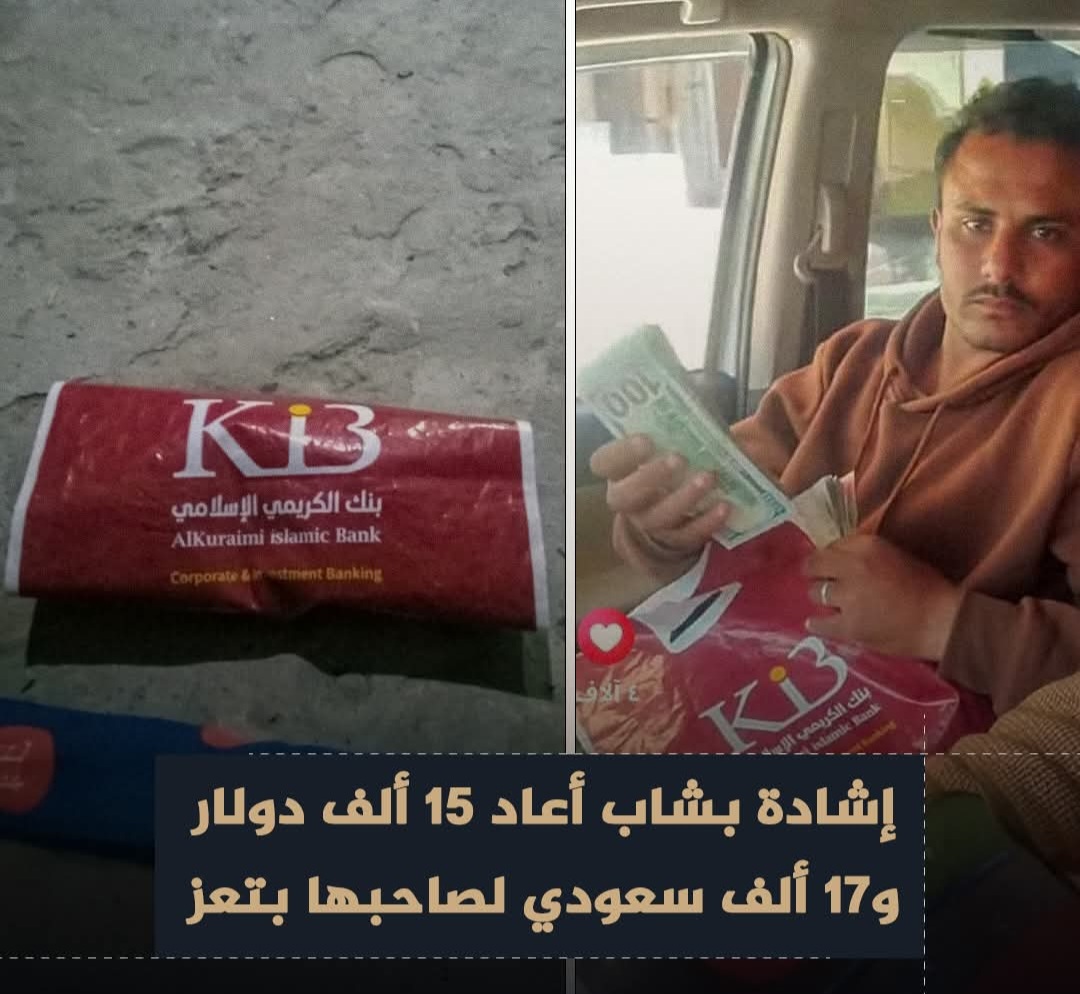 في موقف إنساني يُجسّد القيم الأخلاقية النبيلة، أعاد شاب من محافظة تعز مبلغًا ماليًا كبيرًا قُدِّر بـ15 ألف دولار أمريكي و17 ألف ريال سعودي، بعد أن كان قد عُثر عليه سابقًا.