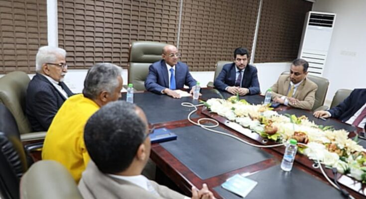ترأس معالي محافظ البنك المركزي اليمني، الأستاذ أحمد أحمد غالب، صباح اليوم الثلاثاء الموافق 28 أبريل 2026، في العاصمة المؤقتة عدن، اجتماعًا موسعًا ضم وكلاء القطاعات ومديري عموم الإدارات في البنك، لمناقشة سير العمل واستعراض آليات تطوير الأداء المؤسسي، ومعالجة التحديات بما يعزز كفاءة الرقابة المصرفية والمالية، ويضمن التطبيق الصارم للقوانين واللوائح النافذة.